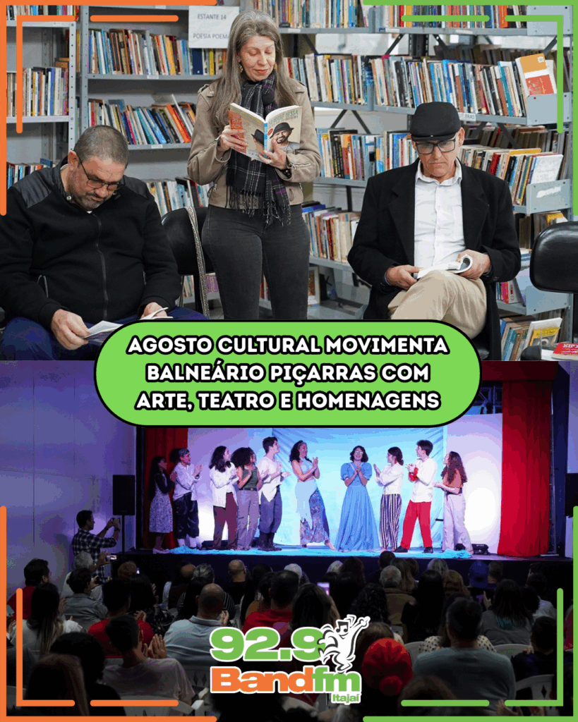 A Fundação Municipal de Cultura de Balneário Piçarras deu início à edição 2025 do Agosto Cultural, evento que celebra o aniversário da instituição com uma programação recheada de atividades artísticas e culturais. A proposta envolve todas as setoriais da cultura local, com destaque para teatro, exposições, música, literatura e artesanato.