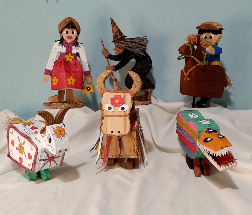 “Quando eu era criança eu fazia brinquedos de palha e resgatei essa expressão cultural para transformar o que iria para o lixo em arte”, explica a artesã.