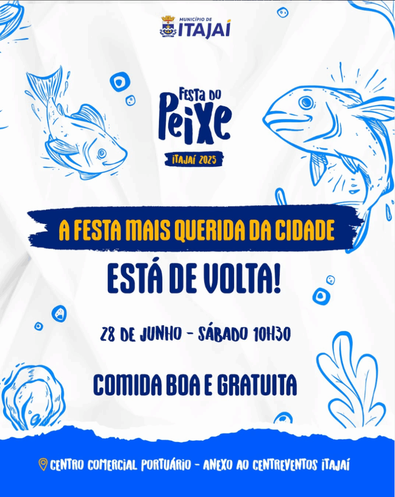 A Câmara de Vereadores de Itajaí também vai participar da Festa do Peixe 2025, que acontece neste sábado (28), a partir das 10h30, no espaço anexo ao Centreventos Governador Luiz Henrique da Silveira, na Avenida Ministro Victor Konder – Beira Rio. A festa objetiva reforçar o vínculo histórico e cultural de Itajaí com os pescados e vai distribuir cerca de 15 toneladas de peixes gratuitamente.