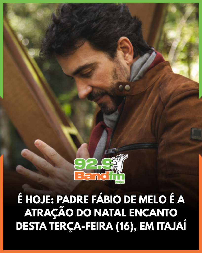 A programação do Natal Encanto de Itajaí terá um de seus momentos mais aguardados na noite desta terça-feira (16), com a apresentação do Padre Fábio de Melo no palco montado no Largo da Matriz, a partir das 20h30. O evento deve reunir milhares de fiéis e admiradores para uma noite marcada por espiritualidade, música e mensagens de esperança, em clima de preparação para o Natal.