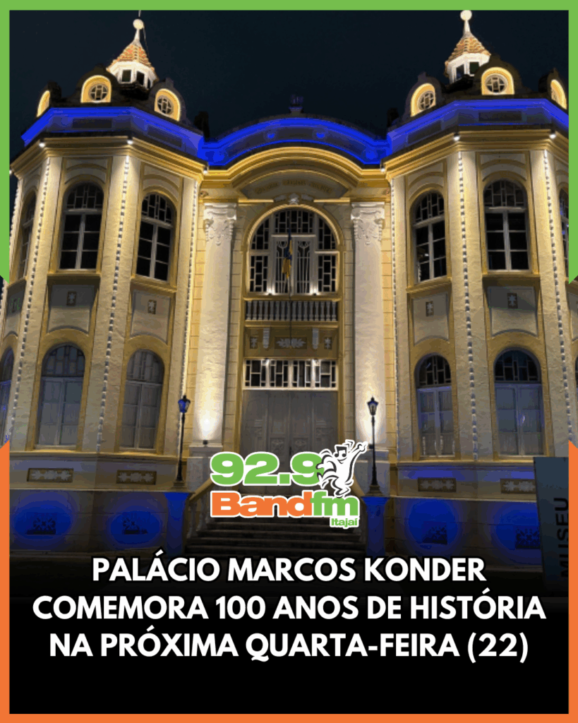 Às 19h, um evento solene marcará a data com homenagens a personalidades que contribuíram para a história do palácio, como a neta de Marcos Konder, Márcia Konder, e o historiador Edison d’Ávila. A programação inclui o Concerto do Centenário, a abertura da exposição “Centenário Palácio Marcos Konder: Cem Anos de História e Memória” e o tradicional bolo comemorativo, preparado pelo CAL Célia Maria Canziani.