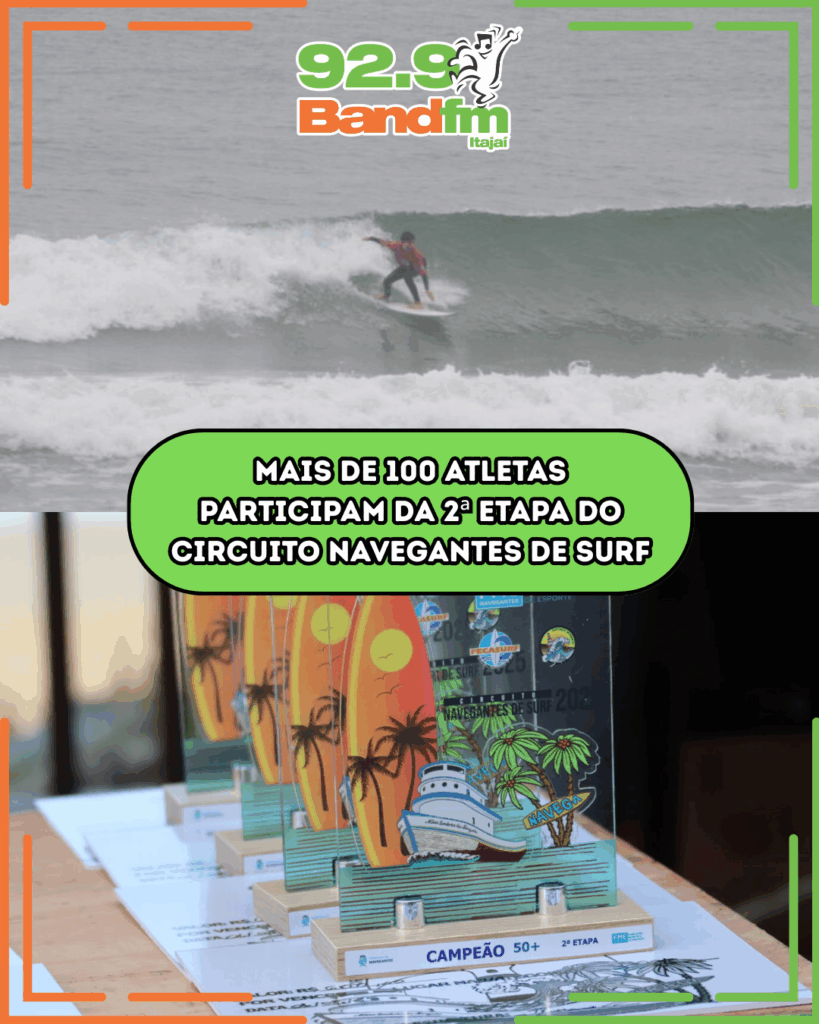 A Praia do Gravatá recebeu, nos dias 2 e 3 de agosto, a segunda etapa do Circuito Navegantes de Surf, reunindo 101 atletas de oito cidades catarinenses em nove categorias, incluindo Sub 12, Júnior, Longboard e SUP Wave. O evento consolidou o município como referência no surfe estadual, com destaque para o campeão mundial Diego Rosa, que venceu a categoria 40+ após surfar ondas de 12 metros em Jaguaruna na semana anterior.