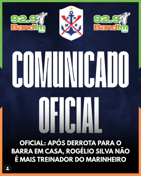 OFICIAL: Após derrota para o Barra em casa, Rogélio Silva não é mais treinador do Marinheiro; LEIA NOTA OFICIAL DIVULGADA PELO CLUBE: