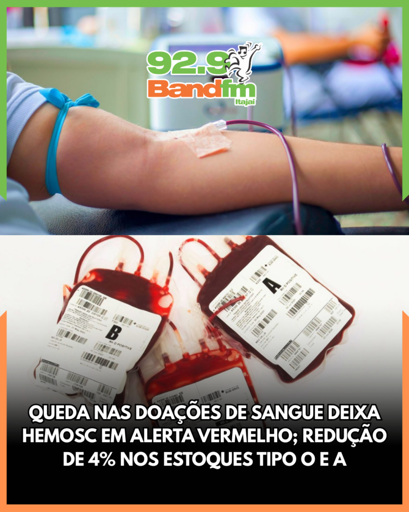 Santa Catarina enfrenta um cenário preocupante após a queda nas doações de sangue nas últimas semanas. O Centro de Hematologia e Hemoterapia do estado (Hemosc), responsável por cerca de 98% da coleta e distribuição, emitiu alerta diante da redução de 4% nos estoques em comparação ao mesmo período do ano passado.