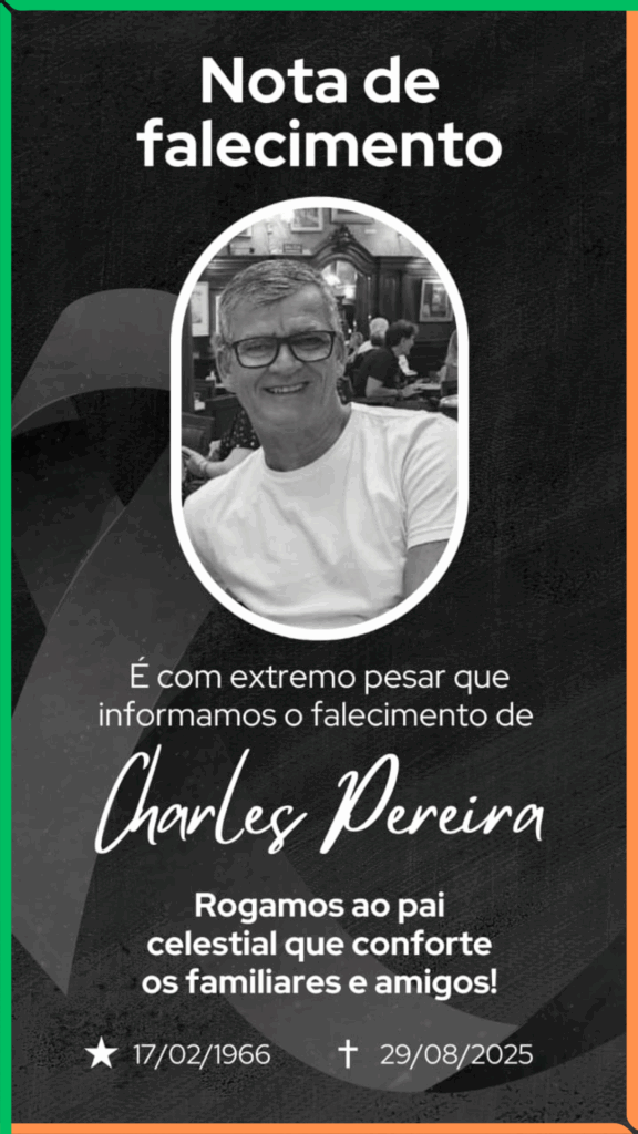 É com profundo pesar que informamos o falecimento de Charles Pereira, que veio à óbito nesta sexta-feira (29).