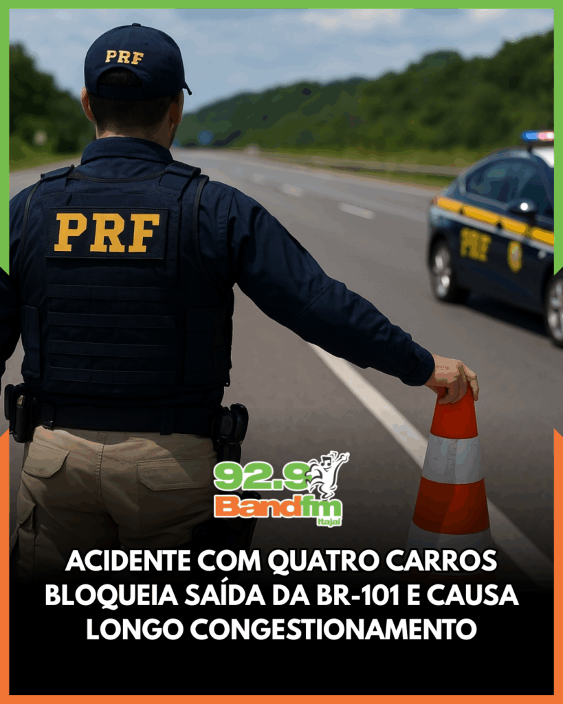 Um acidente envolvendo quatro veículos interditou a saída da BR-101 para a marginal sentido Norte, logo após a ponte que dá acesso a Brusque, na manhã desta segunda-feira (17). A colisão ocorreu por volta das 11h e deixou o trânsito completamente travado no trecho, obrigando motoristas a desviar pela marginal.