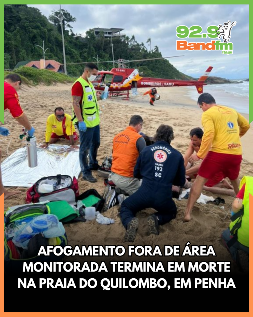 Um homem de 31 anos morreu após se afogar na tarde de segunda-feira (16) na Praia do Quilombo, em Penha. A ocorrência foi registrada por volta das 15h50 em um ponto conhecido como “Pico”, área sem cobertura de guarda-vidas, o que pode ter dificultado o socorro imediato.