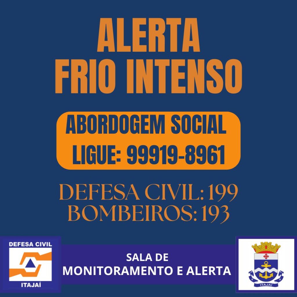 Para auxiliar durante o período de frio intenso, a Abordagem Social está disponível via WhatsApp no número (47) 99919-8961 ou pelo 153. A Defesa Civil também recomenda o cadastro nos canais oficiais de alerta no Instagram, Telegram e WhatsApp. O atendimento administrativo da Central de Operações Integradas (COI) ocorre de segunda a sexta-feira, das 13h às 19h, pelo número (47) 3228-7700.