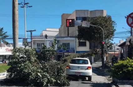 Na tarde desta segunda-feira (28), uma árvore caiu na Rua Joca Brandão, no Centro de Itajaí, em decorrência dos fortes ventos que atingem a região.