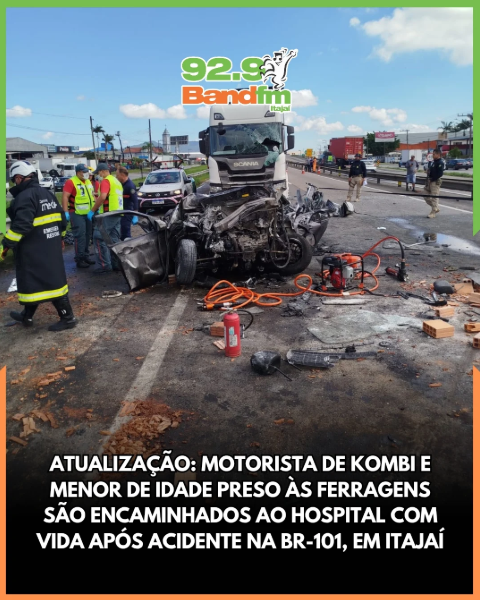 Um grave acidente registrado na manhã desta quarta-feira (18) na BR-101, no bairro Salseiros, em Itajaí, resultou em múltiplas vítimas e mobilizou diversas equipes de resgate. A ocorrência foi atendida pelo 7º Batalhão de Bombeiros Militar, com acionamento das viaturas ABTR-229, AR-171, ASU-513 e ASU-539. Inicialmente, as guarnições foram chamadas para um incêndio envolvendo dois caminhões, mas, ao chegarem ao local, constataram que as chamas já haviam sido controladas por populares com o uso de extintores.