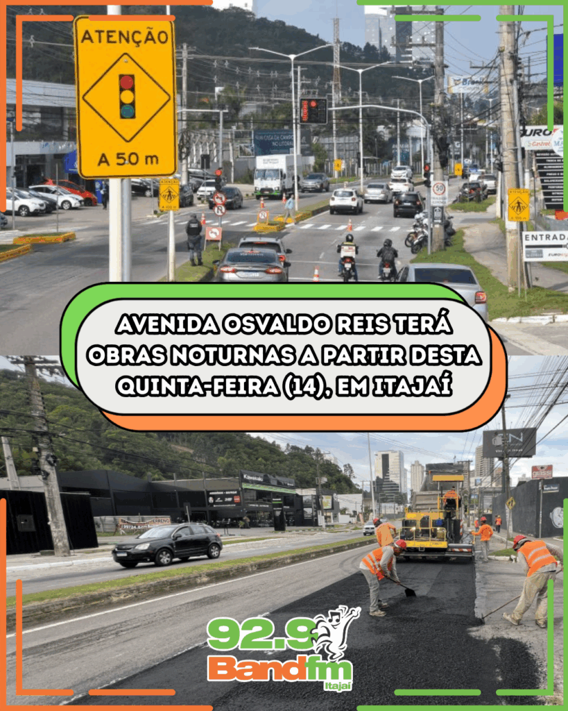 A avenida Osvaldo Reis, em Itajaí, receberá obras noturnas a partir desta quinta-feira (14). Os serviços de fresa, raspagem do asfalto danificado, iniciarão às 20h e seguem até a meia-noite. A organização dos trabalhos para esta quinta (14) e sexta-feira (15) tem como objetivo agilizar os trabalhos e não prejudicar o trânsito intenso durante o dia.