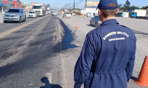 Bombeiros de Araquari agem rápido para neutralizar derramamento de óleo na BR-280
