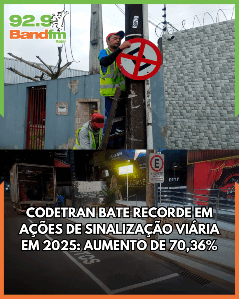 A Coordenadoria de Trânsito de Itajaí (Codetran) registrou aumento nas atividades de sinalização viária em 2025. Até o dia 31 de agosto, foram contabilizadas 1.431 ordens de serviço, superando as 840 registradas no mesmo período de 2024, um crescimento de 70,36%, que evidencia o fortalecimento das ações voltadas à segurança, organização e fluidez do trânsito.
