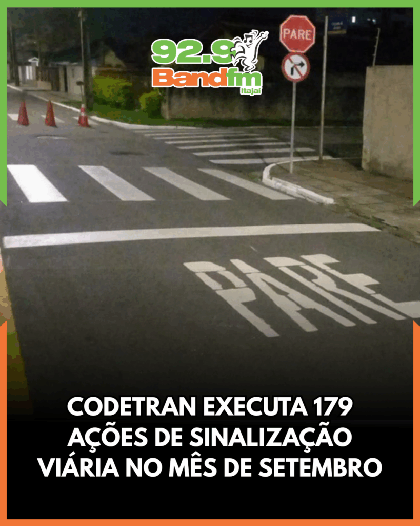 O setor de Sinalização Viária da Coordenadoria de Trânsito de Itajaí (Codetran) encerrou o mês de setembro de 2025 com um balanço positivo de atividades. No período, foram realizadas 179 intervenções em diferentes pontos da cidade, entre implantação, revitalização e adequação da sinalização viária.