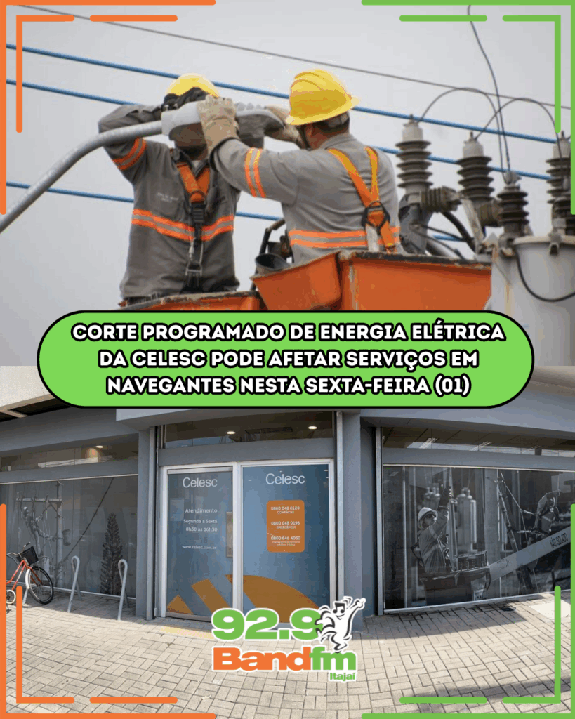 Devido a um corte programado de energia elétrica em diversos bairros de Navegantes, realizado pela Celesc, alguns serviços da Prefeitura poderão ser temporariamente afetados nesta sexta-feira, dia 1º de agosto.