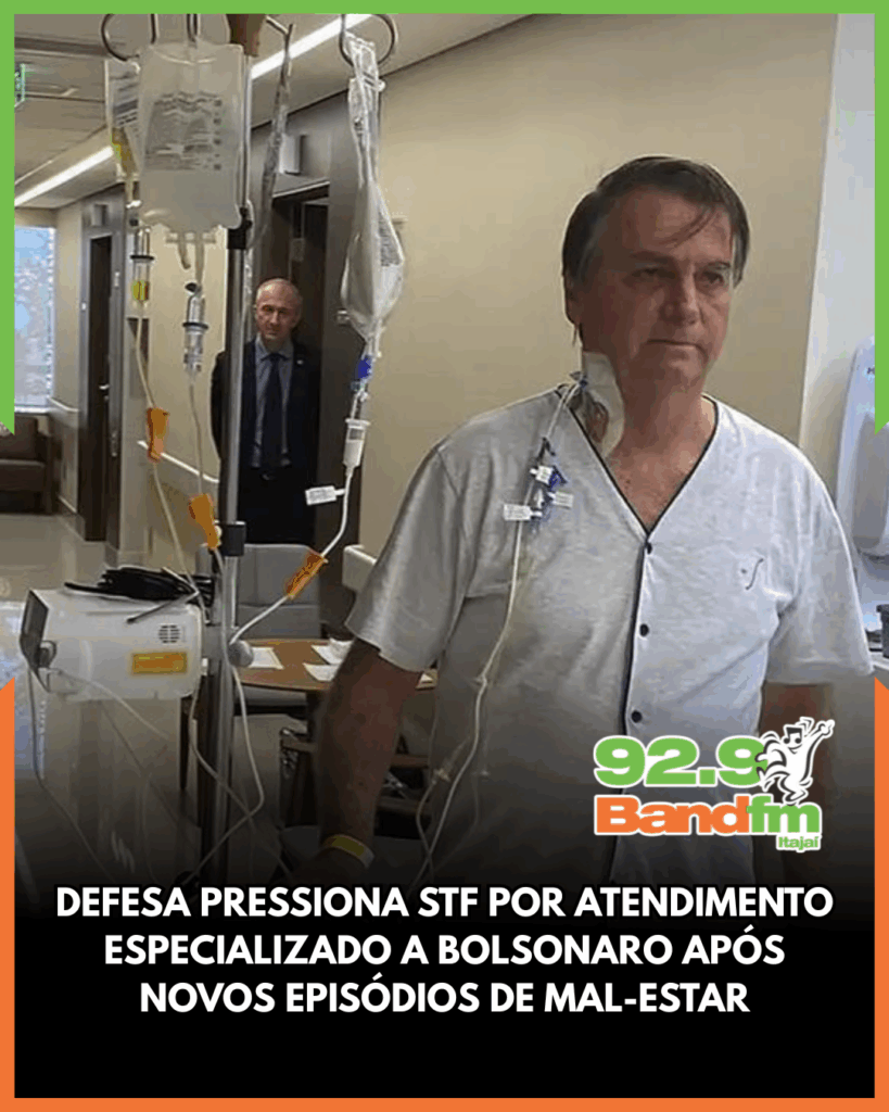 A defesa do ex-presidente Jair Bolsonaro solicitou ao ministro Alexandre de Moraes, do STF, autorização urgente para que um cardiologista e um fisioterapeuta passem a acompanhá-lo dentro da Superintendência da Polícia Federal, onde ele cumpre pena sob monitoramento judicial. O pedido ocorre após Bolsonaro passar mal no dia 27 de novembro, episódio que reforçou, segundo os advogados, a necessidade de assistência médica contínua e especializada.