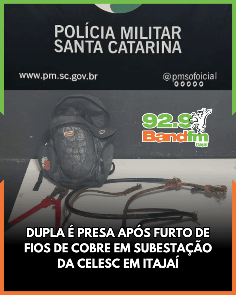 A Polícia Militar de Itajaí prendeu dois homens, de 47 e 50 anos, flagrados durante a madrugada desta quarta-feira (26) furtando fios de cobre na subestação da Celesc, localizada na Rodovia Antônio Goedert, no bairro Itaipava. A guarnição PM3422 foi acionada por volta das 2h após o vigilante do local surpreender os suspeitos deixando a área com o material furtado.