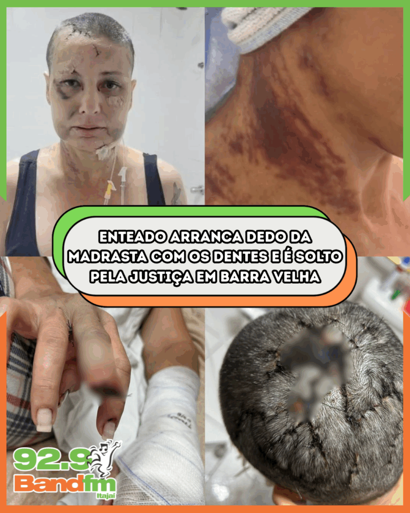 Uma empresária de 45 anos foi vítima de uma tentativa de feminicídio em Barra Velha, no Litoral Norte de Santa Catarina. O agressor, seu enteado de 23 anos, a atacou com golpes de barra de ferro pelas costas, deixando-a inconsciente. A mulher sofreu múltiplos ferimentos, precisou de mais de 300 pontos na cabeça, teve uma mão quebrada e parte de um dedo decepada com uma mordida.