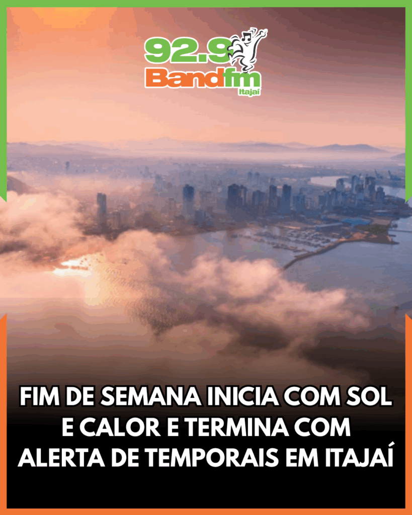 O fim de semana em Itajaí terá início com tempo firme, sol e calor, mas o cenário muda a partir do final da tarde de sábado (20). A Defesa Civil alerta para chuva intensa e volumosa que deve se estender até segunda-feira (22), causada pela aproximação de uma frente fria e áreas de instabilidade no Vale do Itajaí e Litoral Norte de SC.