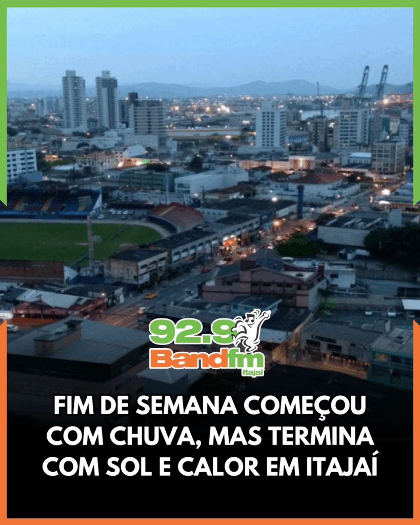 Já no domingo (05), o tempo firme retorna, com sol predominando e temperaturas em elevação. Os termômetros devem variar entre 17 °C e 24 °C até sábado, e subir no domingo, alcançando máximas de até 30 °C em Itajaí.