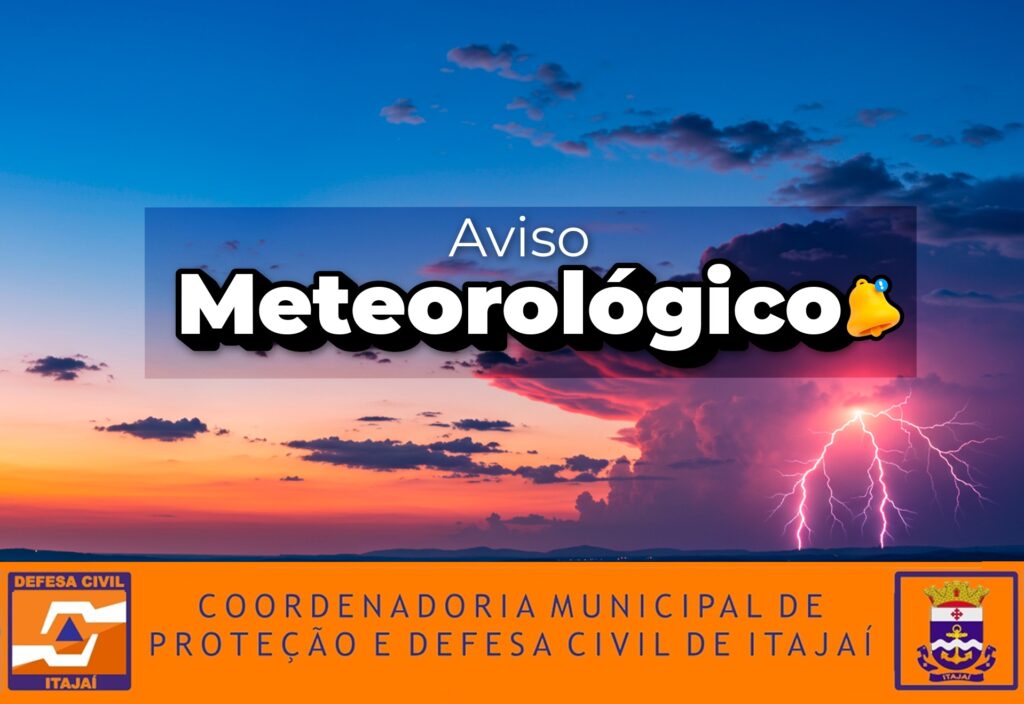 A Defesa Civil emitiu alerta para esta quarta-feira (21) devido à atuação de uma frente fria que provoca temporais, chuva intensa e fortes rajadas de vento em Itajaí e diversas regiões de Santa Catarina. O risco é alto para alagamentos, enxurradas, quedas de galhos, árvores e danos na rede elétrica, especialmente entre a tarde e a noite.
