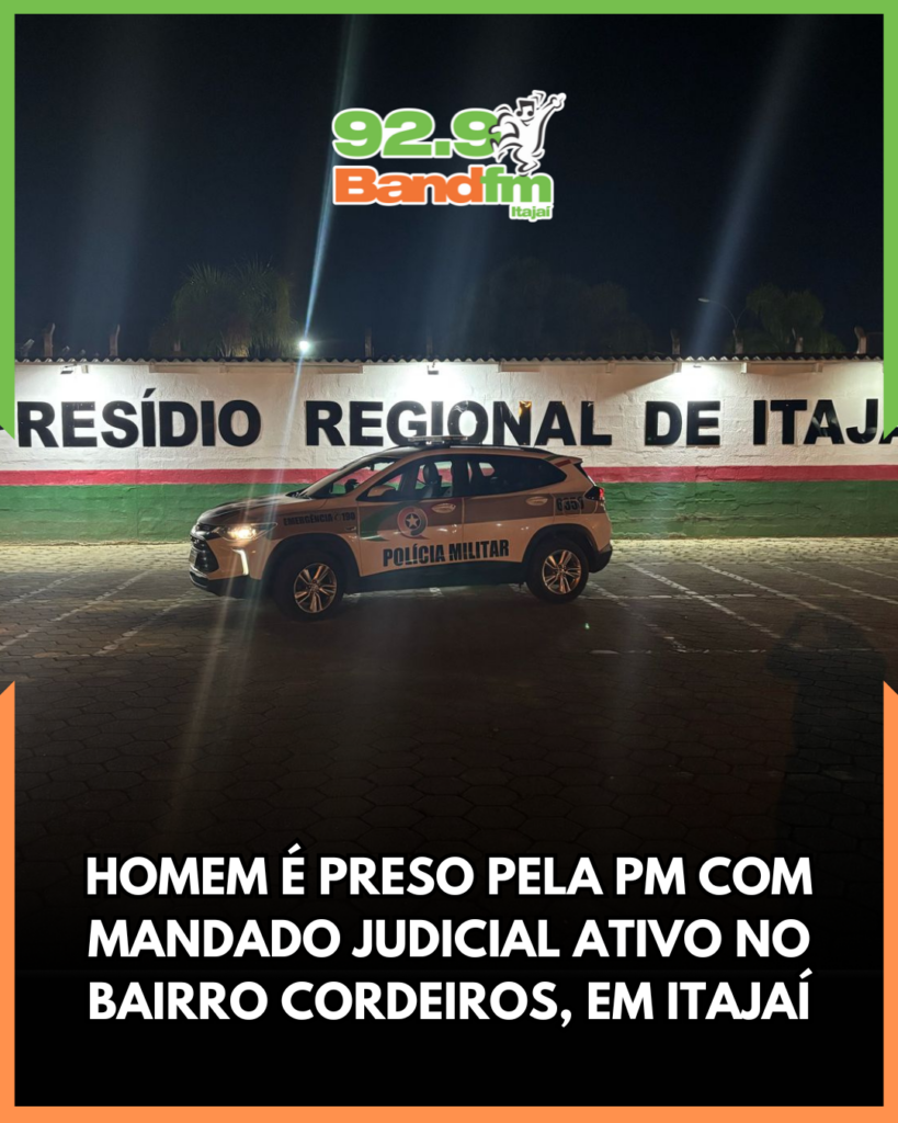 O mandado, de natureza civil, foi expedido pela Vara de Família e Sucessões da Comarca de São José dos Pinhais, no Paraná, em razão do não pagamento de pensão alimentícia. A dívida soma R$ 16.980,69. Assim, foi dada voz de prisão ao indivíduo, que foi encaminhado ao Complexo Penitenciário do Vale do Itajaí, em Canhanduba, onde permanece à disposição da Justiça.