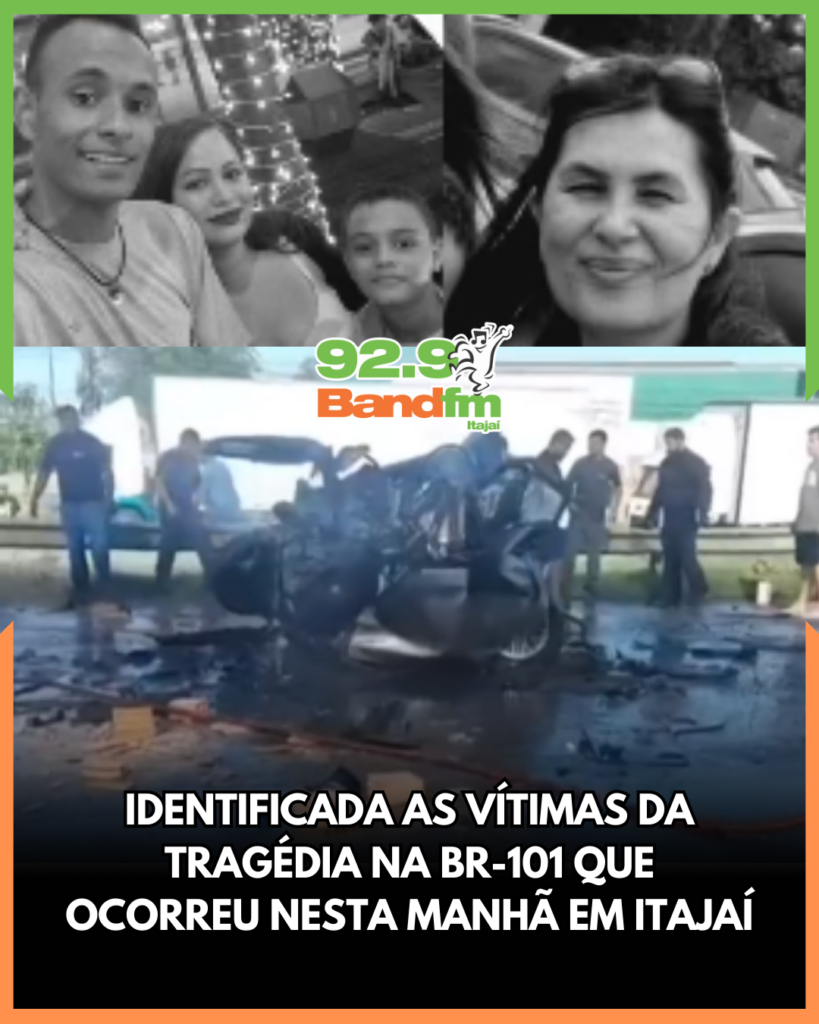 Uma tragédia marcou a manhã desta quarta-feira (18) na BR-101, em Itajaí. Três pessoas da mesma família morreram em um grave engavetamento no km 115 da rodovia. As vítimas estavam em um Fiat Cronos e foram identificadas como Kayo Alves, de 32 anos, a esposa Camila Rios Lima, de 31, e a mãe de Kayo, Cleonice Alves, de 55 anos. Os três morreram ainda no local. No banco traseiro, o filho do casal, um menino de 10 anos, foi resgatado com vida e encaminhado ao Hospital Infantil Pequeno Anjo, em Itajaí, em estado grave.