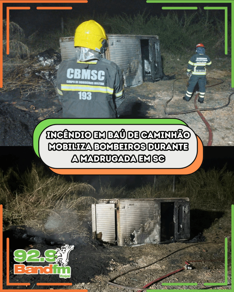 Na madrugada desta terça-feira (19), o 7° Batalhão de Bombeiros Militar foi acionado para combater um incêndio em um baú de caminhão descartado na Rua Juviniano da Maia, no bairro Ponto Alto, em Araquari. As chamas se espalharam para entulhos ao redor, que continham grande quantidade de plástico e madeira, aumentando a intensidade do fogo.