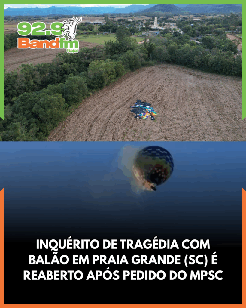 O Ministério Público de Santa Catarina (MPSC) solicitou a reabertura do inquérito que investiga as causas do acidente de balão em Praia Grande, que vitimou oito pessoas em 21 de junho. A decisão foi confirmada pelo delegado André Coltro nesta terça-feira (11), apesar de a Polícia Civil ter concluído a investigação em 8 de setembro sem indiciamentos, por não comprovar conduta dolosa ou culposa.