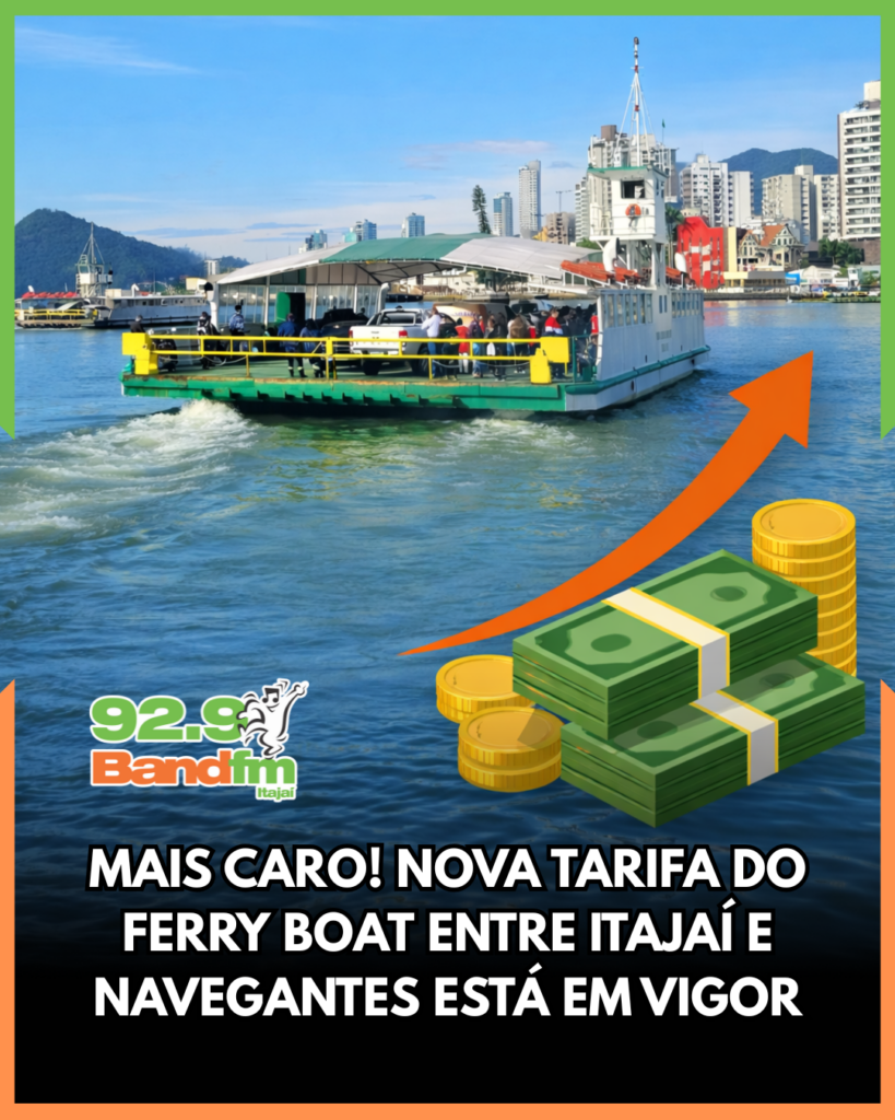 Entrou em vigor neste domingo (11) o novo valor da tarifa da travessia de ferry boat entre Itajaí e Navegantes. O reajuste foi autorizado pela Agência de Regulação de Serviços Públicos de Santa Catarina e passa a impactar diretamente passageiros e motoristas que utilizam o serviço, especialmente quem depende da travessia no dia a dia.