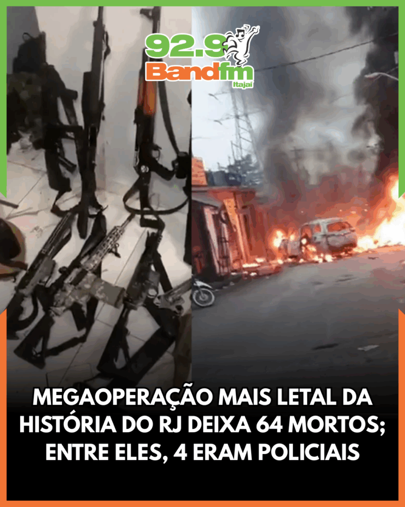 Quatro policiais (dois civis e dois militares) perderam a vida nesta terça-feira (28), durante a operação mais letal já registrada no Rio de Janeiro, que resultou em 64 mortes e 81 prisões nas comunidades do Alemão e da Penha. A ação, que mobilizou cerca de 2,5 mil agentes, tinha como objetivo enfraquecer o Comando Vermelho (CV) e prender chefes do tráfico de drogas e armas. No confronto, criminosos reagiram com drones, explosivos e barricadas em chamas, transformando as ruas das comunidades em cenário de guerra.