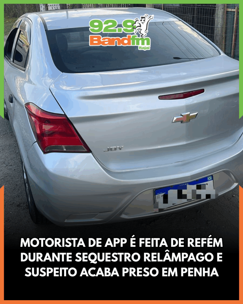 Uma motorista de aplicativo de 42 anos viveu momentos de pânico após ser vítima de um sequestro relâmpago na tarde desta quarta-feira (05). O crime começou no centro de Itajaí, quando a mulher aceitou uma corrida com destino à cidade de Penha, por volta das 17h30. Durante o trajeto, o passageiro, homem de 29 anos, passou a agir de forma agressiva e exigiu que ela desviasse o percurso para a casa de sua namorada.