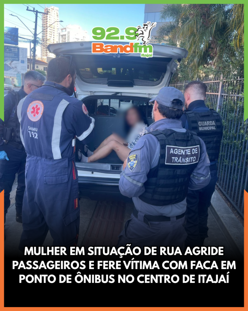 Mulher em situação de rua agride passageiros e fere vítima com faca em ponto de ônibus no Centro de Itajaí