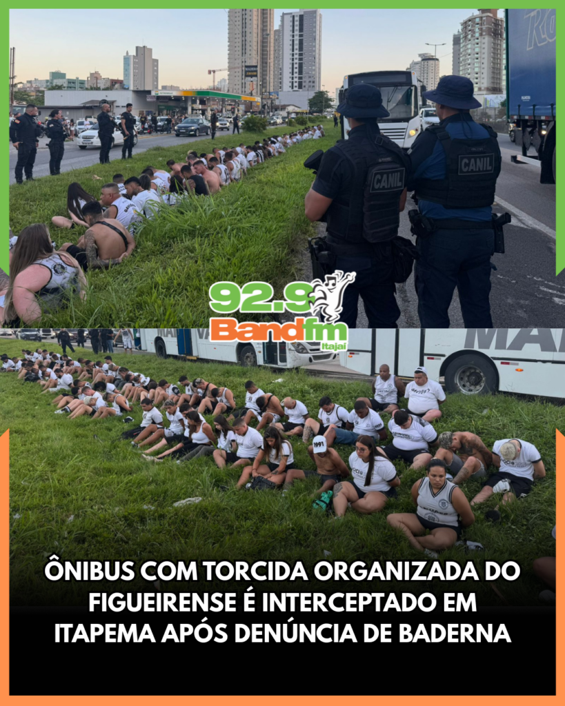 A Guarda Municipal de Itapema abordou, na tarde desta quarta-feira (7), um ônibus que transportava integrantes de uma torcida organizada do Figueirense, após denúncias de desordem durante o trajeto. Segundo a Secretaria de Segurança Pública, o veículo vinha de Florianópolis com destino a Joinville e foi parado por volta das 17h45 em um ponto seguro, após relatos de arremesso de objetos e perturbação da ordem pública.