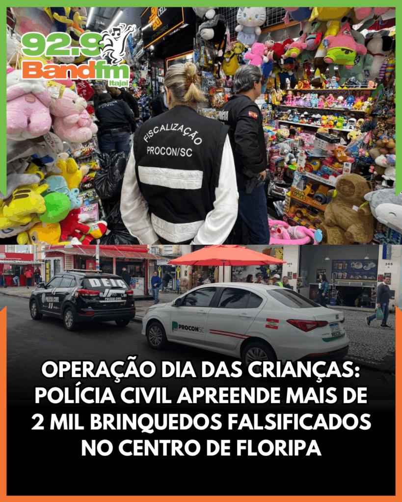 A Polícia Civil de Santa Catarina, por meio da Delegacia de Investigação de Crimes Ambientais e Crimes contra as Relações de Consumo (DCAC/DEIC), deflagrou nesta quinta-feira (09), operação integrada de combate à pirataria de brinquedos no centro de Florianópolis. A ação antecede o Dia das Crianças, celebrado no próximo fim de semana, período de maior comercialização desses produtos.