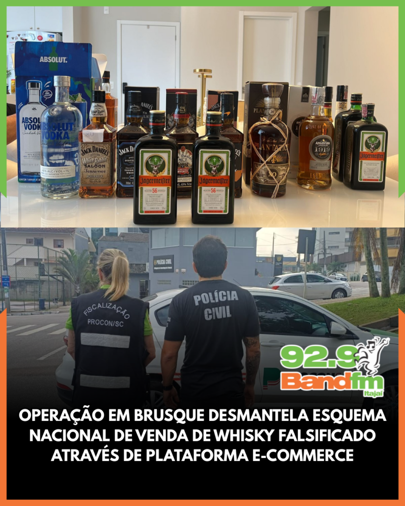 A Polícia Civil de Santa Catarina deflagrou nesta quarta-feira (3) uma operação que investiga a venda de bebidas alcoólicas falsificadas distribuídas para todo o país por meio de uma grande plataforma de e-commerce. A ação, conduzida pela DCAC/DEIC, apura a atuação de um suspeito de Brusque que enviava whisky contrafeito para diferentes estados utilizando estruturas de comércio digital.