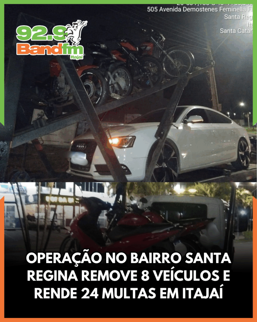 Operação no bairro Santa Regina remove 8 veículos e rende 24 multas em Itajaí