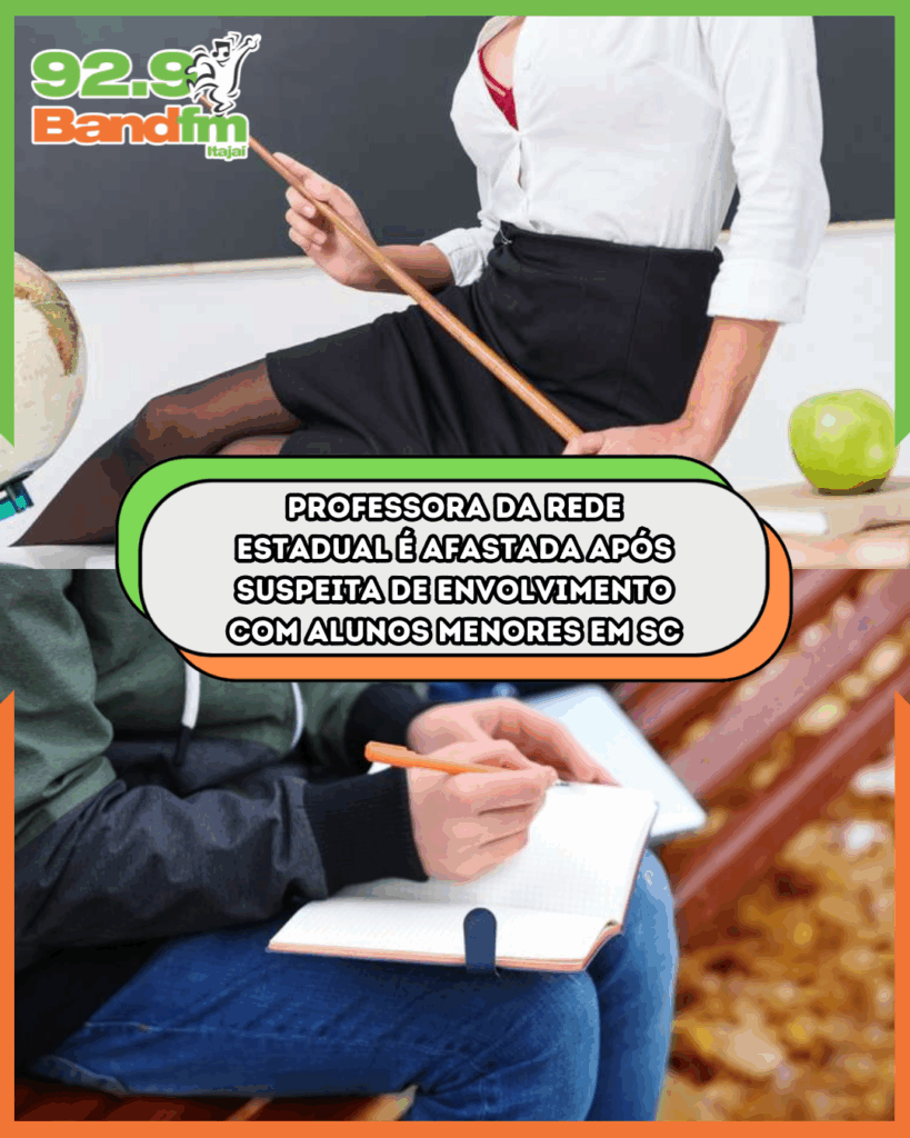 Uma professora da rede estadual de Araranguá (SC) foi afastada das funções após a abertura de um processo administrativo que investiga seu suposto envolvimento com três estudantes de 16 e 17 anos. A denúncia, apurada pela Coordenadoria Regional de Educação (CRE), também aponta a possível divulgação de imagens íntimas relacionadas ao caso.