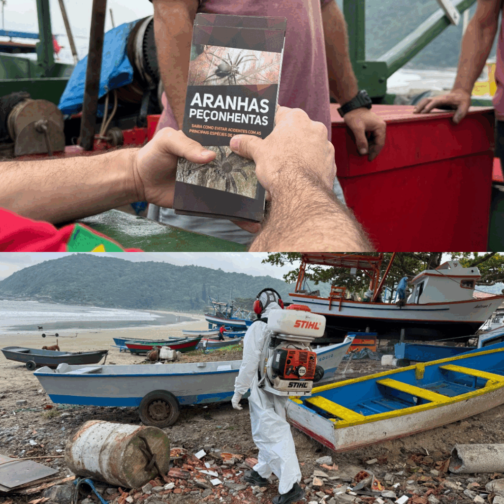 A Saúde Municipal realizou conscientização em resposta a denúncias sobre a quantidade excessiva de aranhas na região da Praia de São Miguel. “Além do mutirão de limpeza, conscientizamos os moradores sobre métodos para evitar os aracnídeos e como proceder em caso de picadas”, explica o coordenador do Programa de Combate à Dengue, Alexandre Deolindo.