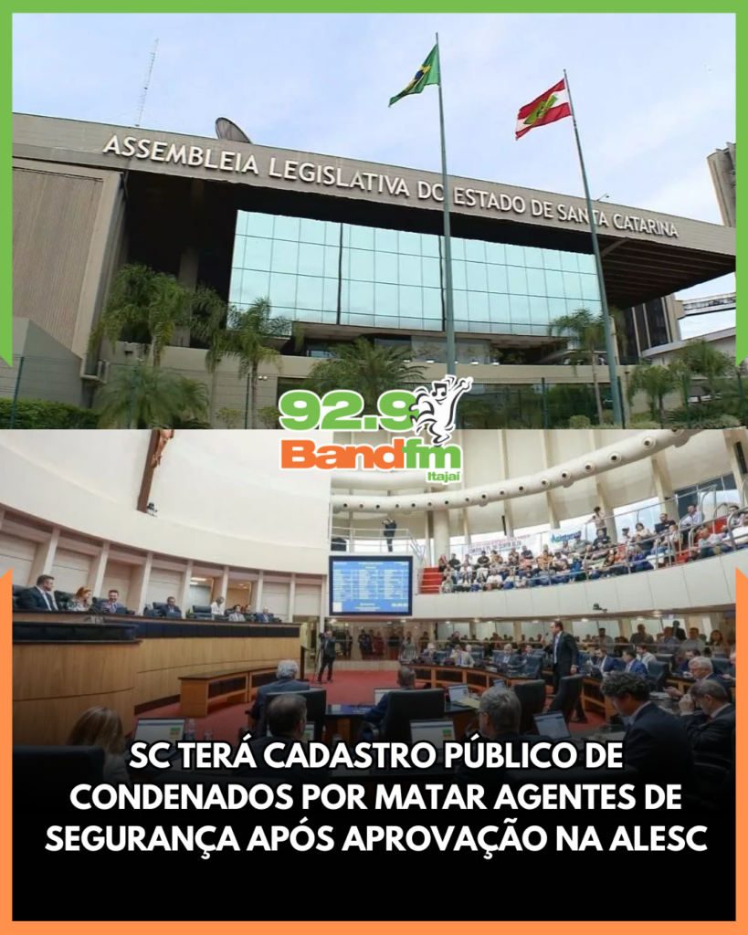 A Assembleia Legislativa de Santa Catarina aprovou o Projeto de Lei nº 443/2024, que cria um cadastro estadual com informações de pessoas condenadas por homicídios contra agentes de segurança pública. A proposta, de autoria do Alex Brasil, foi votada na terça-feira (24) e agora aguarda sanção do Jorginho Mello. Após o protocolo oficial, o governo terá prazo legal para análise jurídica e técnica.