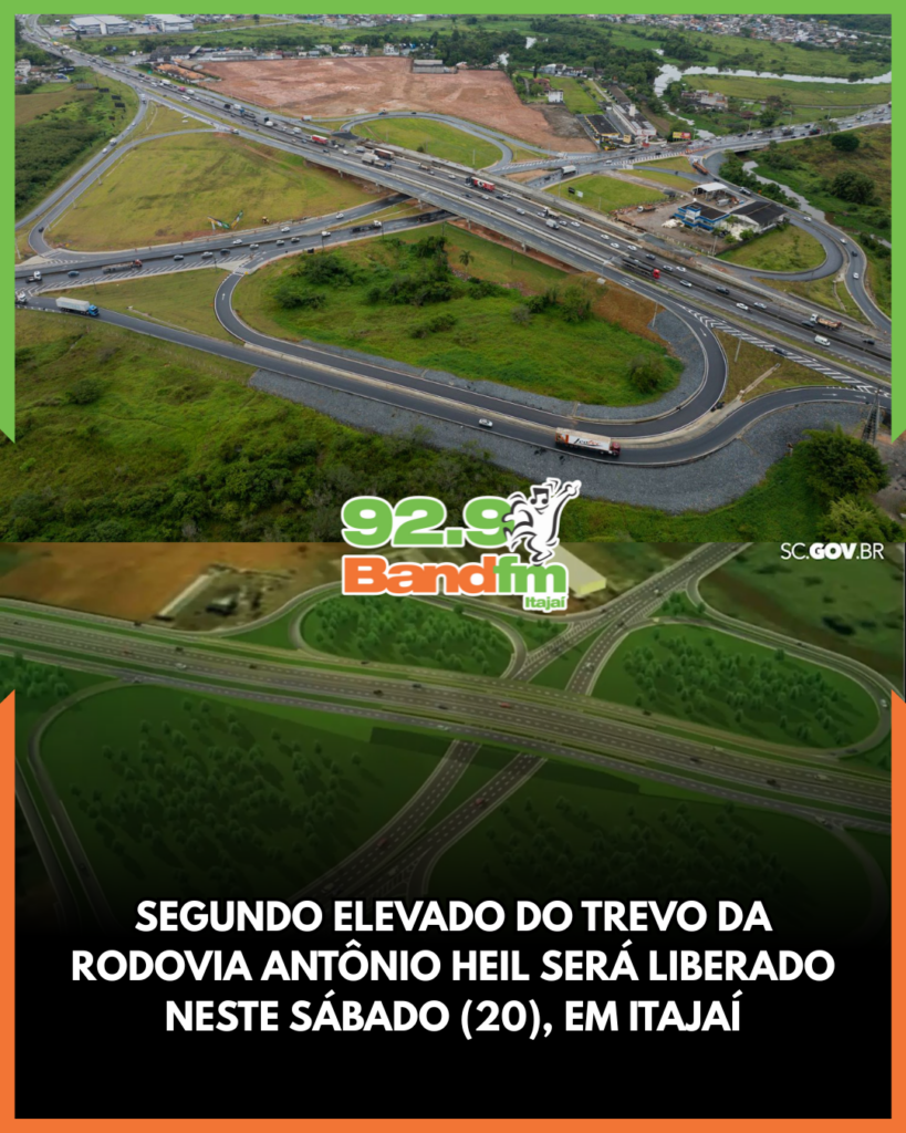 Será inaugurado neste sábado (20), em cerimônia à partir das 8h, o segundo elevado do trevo da rodovia Antônio Heil (SC-486) com a BR-101, em Itajaí. O primeiro viaduto (Oeste) foi liberado para trânsito de veículos em 17 de novembro. Agora, a liberação do elevado Leste representa um avanço significativo para as obras de modernização que ligam o Vale do Itajaí e o Litoral Norte de Santa Catarina.