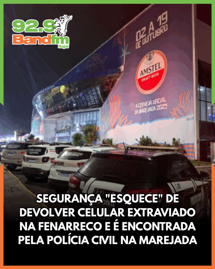 A Polícia Civil recuperou um celular extraviado durante a Festa Fenarreco, em Brusque, que foi localizado posteriormente na Marejada, em Itajaí (mais de 60 km de distância). O caso ganhou contornos inusitados quando as investigações apontaram que o aparelho havia sido entregue a uma integrante da equipe de segurança privada do evento que, ao invés de comunicar o achado, teria se apropriado do bem.