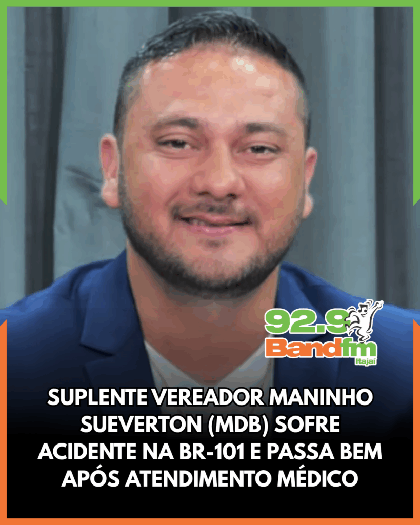 O suplente de vereador de Itajaí Sueverton Aquino, conhecido como Maninho (MDB), sofreu um acidente na manhã desta terça-feira (4) na BR-101, em Itajaí. Apesar do susto, o político foi socorrido consciente e encaminhado ao hospital, onde passou por exames de raio-x e outros procedimentos médicos.