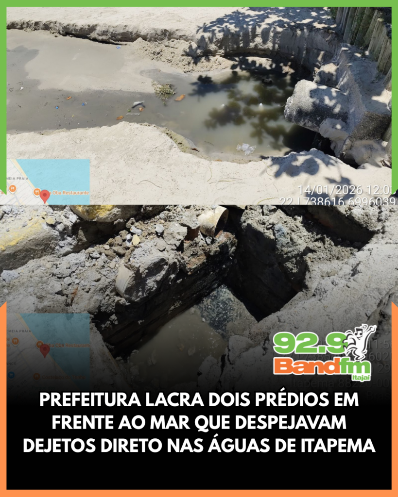 Durante a ação, dois prédios foram lacrados após a constatação de ligações irregulares que lançavam efluentes diretamente na rede de drenagem pluvial, com impacto direto no mar e na balneabilidade da praia. As operações fazem parte do endurecimento das medidas definidas em reunião técnica coordenada pelo prefeito Alexandre Xepa, que reforçou a fiscalização e a aplicação do decreto municipal.