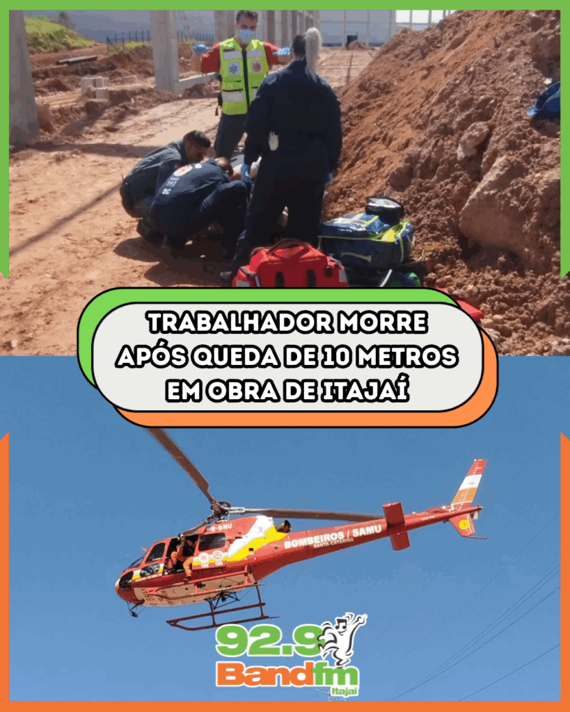 Um grave acidente de trabalho foi registrado no fim da manhã desta quinta-feira (21), em Itajaí. Um homem identificado pelas iniciais E.S.N. caiu de cerca de 10 metros enquanto atuava na montagem de um galpão de pré-moldados, não resistindo aos ferimentos.