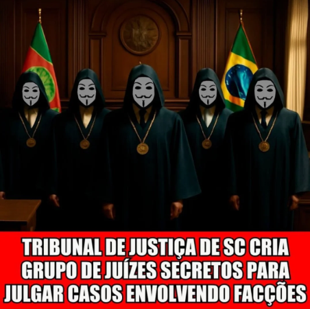O Tribunal de Justiça de SC criou um grupo com cinco juízes “secretos” pra julgar criminosos ligados a facções. Eles não vão ter o nome divulgado e vão trabalhar em esquema de rodízio, justamente para não correrem risco e evitarem ameaças.