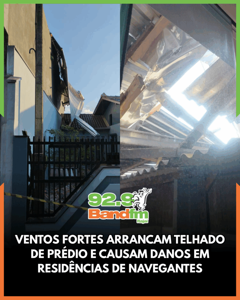 O Corpo de Bombeiros Militar de Navegantes foi acionado no fim da tarde desta quarta-feira (5), por volta das 17h, após fortes rajadas de vento destelharem uma residência multifamiliar de três pavimentos no município. A força do vento arrancou completamente a estrutura de madeira e o telhado metálico do prédio, deixando materiais pendurados e espalhados. Uma casa vizinha também sofreu danos, mas ninguém ficou ferido.