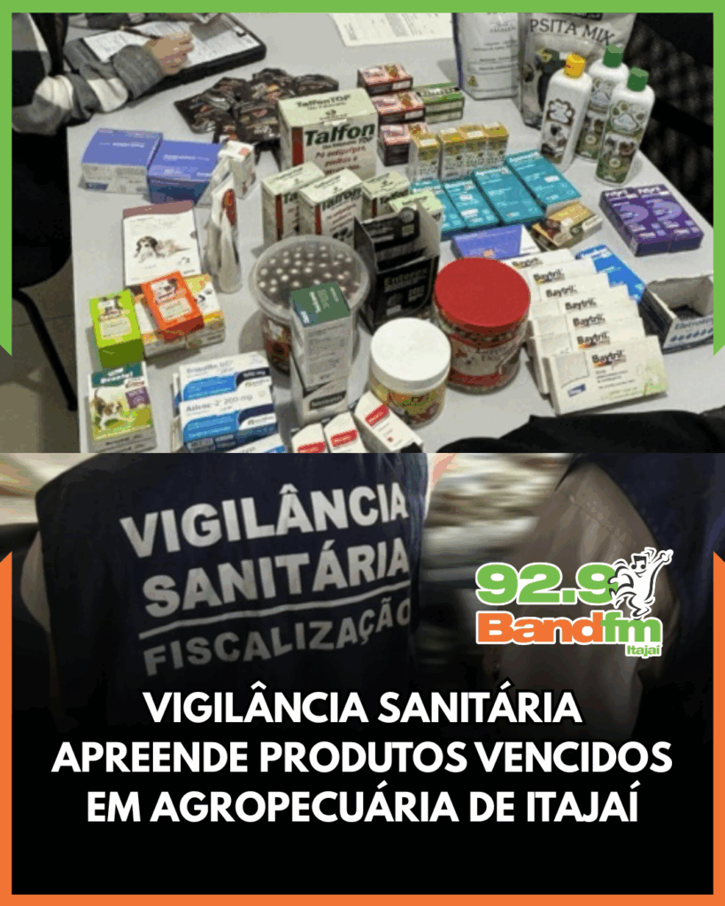A Vigilância Sanitária de Itajaí apreendeu, nesta quarta-feira (24), uma grande quantidade de produtos vencidos em uma agropecuária do bairro São João. Entre os itens encontrados estavam alimentos, medicamentos em comprimidos, soluções injetáveis, shampoos e sabonetes voltados ao uso animal. A irregularidade foi descoberta após denúncia feita pela plataforma Fala BR.