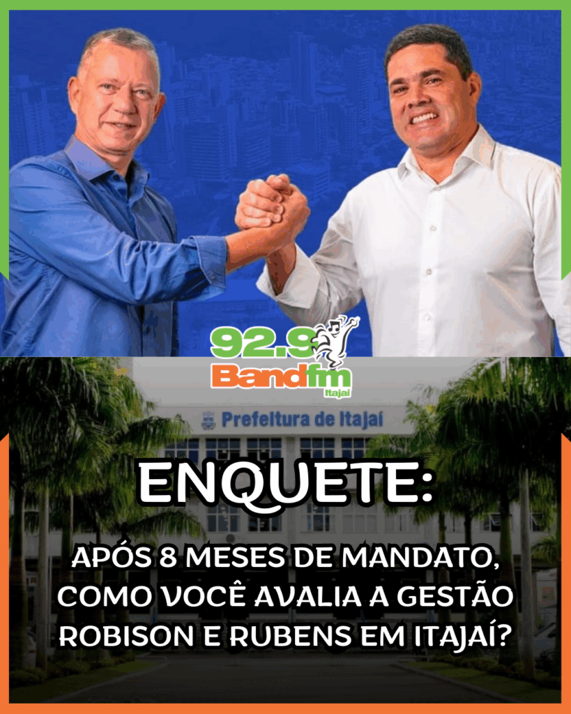 Após 8 meses de mandato, como você avalia a gestão Robison Coelho e Rubens Angioletti na Prefeitura de Itajaí?