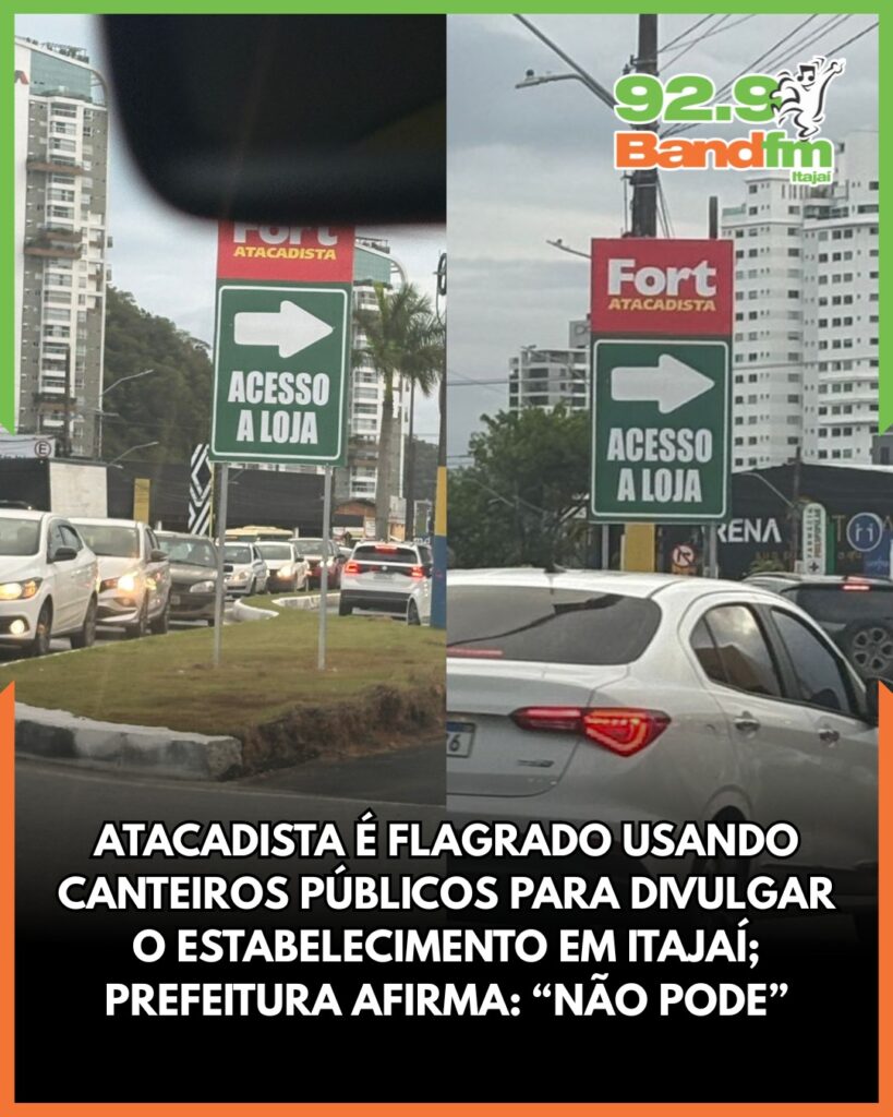 Moradores do bairro Ressacada enviaram imagens ao jornalismo da Band FM Itajaí mostrando que um atacadista utilizou os canteiros das vias públicas de Itajaí para instalar placas e faixas de divulgação do acesso ao estabelecimento. As imagens mostram o material promocional disposto em áreas de uso coletivo, o que gerou dúvidas e reclamações entre transeuntes da região.
